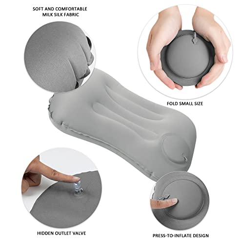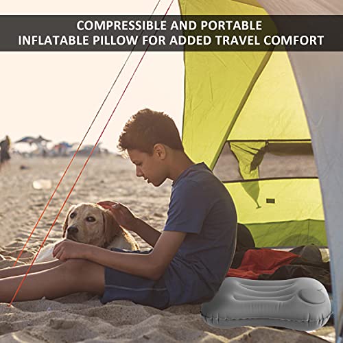 Kit viaggio campeggio, 4 pezzi, cuscino pieghevole gonfiabile, maschera occhi, tappi orecchie, con borsa portaoggetti, portatile, comprimibile, gonfiabile portatile, escursionismo,viaggi (grigio)