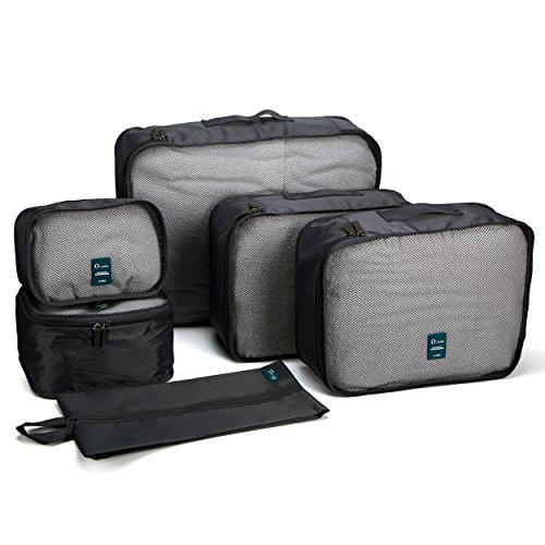 Oklm viaggio imballaggio cubi (set da) | Portable bagagli accessori | Impilabile organizer e Space Savers | abiti, articoli da toeletta, giocattoli | incl. borsa per scarpe Nero Black