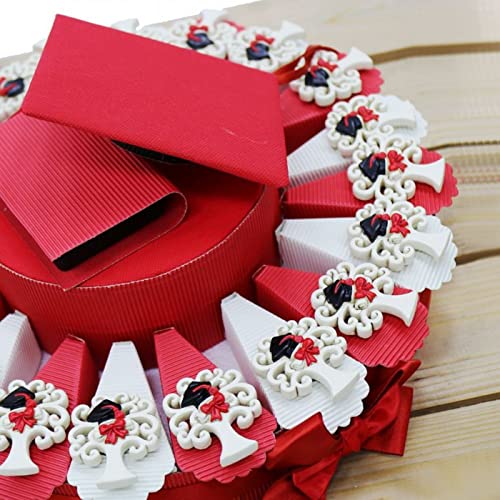 Il Design esclusivo delle bomboniere Magnete Albero della Vita Tocco Laurea dipinti a mano richiama uno dei simboli più rappresentativi del traguardo raggiunto con riferimento a tutte le facoltà! Ricevi la Torta Bomboniera già assemblata, idea di allestimento confettata per un evento unico!