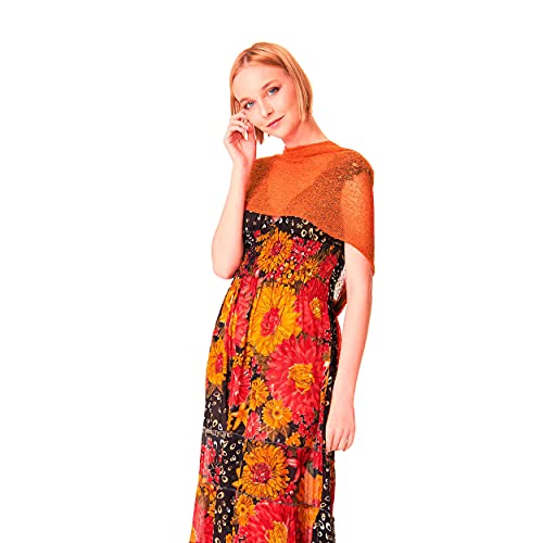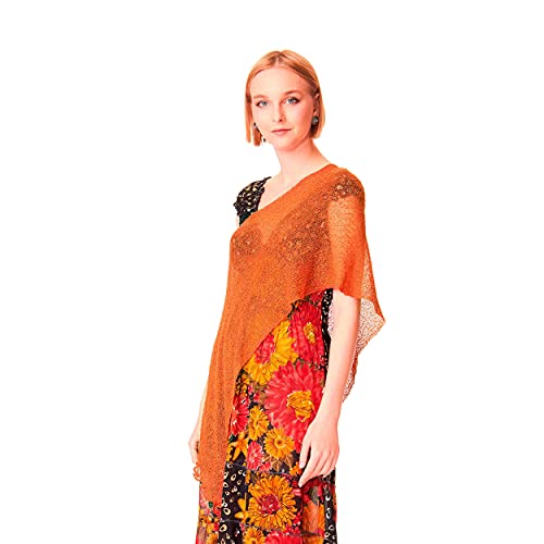 VIALESCARPE - Il Ponchetto Ruggine - Maxi scialle in tessuto rayon, morbido, semitrasparente dalla texture leggera e retata. Bordi ondulati. Donna. Ruggine. Tg. UNI