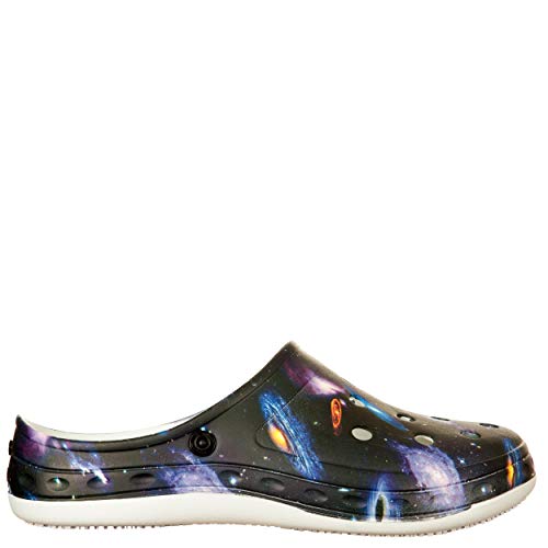 Woz VIALESCARPE - Sabot Galaxy. in Morbida Gomma Memory Foam, con Calda Fodera in Pile Estraibile. Stampa Multicolor, Cinturino Reversibile. Unisex. Multicolor. N. 45-46
