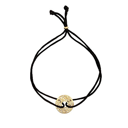 Vianas Bracciale da Donna con Ciondolo A Forma di filigrana Portoghese in Argento Sterling 925 E Corda di Raso Nero Regolabile. Diametro: 15 mm e Argento sterlina, cod. VPL02631