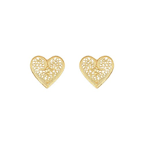 Vianas - Orecchini da donna a perno a forma di cuore in filigrana portoghese in argento sterling 925, altezza 10 mm e placcato Oro, cod. VBR04889