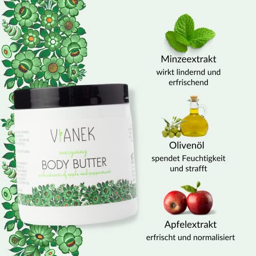 VIANEK Burro energizzante per il corpo, cosmetico naturale vegano, per donne e uomini, 250 ml