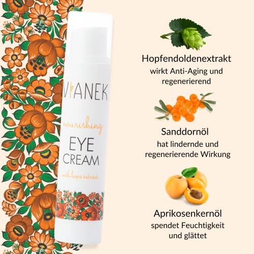 VIANEK Crema per gli occhi nutriente, cosmetico naturale vegano per donne e uomini. Taglia 15 ml.