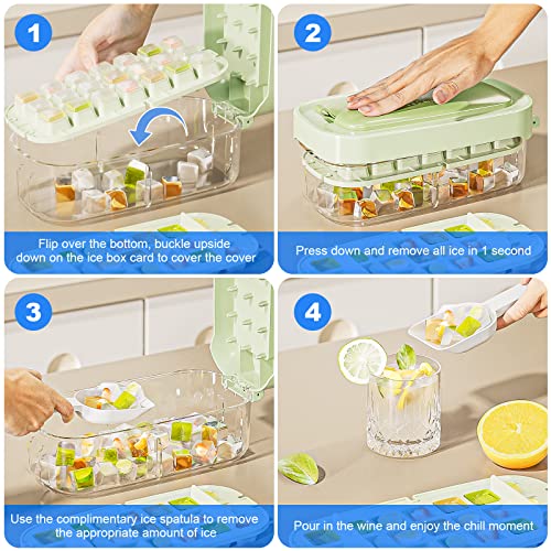 【Set di vassoi per cubette di ghiaccio】 Lo stampo per la preparazione di cubetti di ghiaccio è dotato di una scatola di stoccaggio del ghiaccio, una pala di ghiaccio. Dopo che il ghiaccio è stato realizzato, il ghiaccio può essere versato nella scatola di conservazione del ghiaccio. C'è una scatola di pala nascosta sulla copertura del coperchio del ghiaccio, viene fornito con una propria area di stoccaggio per la pala del ghiaccio.