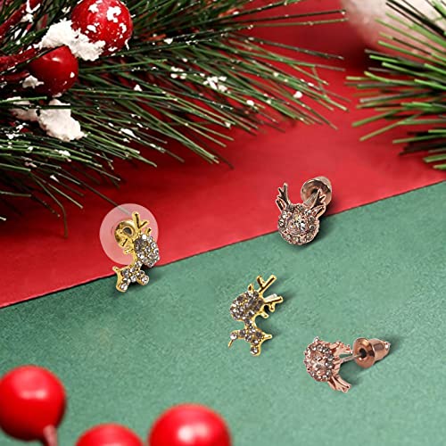 Vibbang 2 Paia di Orecchini Natalizi a Forma di Renna, Corna di Alce e Alce Orecchini di Natale Argento 925 Orecchini, Ipoallergenico per Bambina Bambini Donna