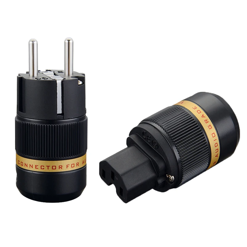 Viborg VE501R+VF501R Pure Copper Rhodium Plated Schuko EU Power Plug European Male connector+IEC Female Connector Plug