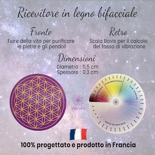 Vibratis Fiore della Vita in Legno per ricaricare Pietre e pendoli divinatori + Scala di bovis per calcolare Il Tasso vibratorio
