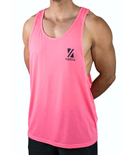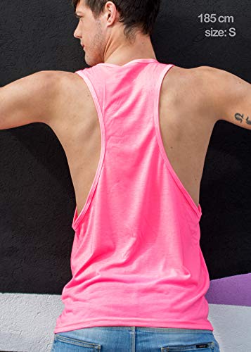 Vibrha Canotta da Palestra e Discoteca Fluorescente - Canottiera Estiva Lunga Gym Uomo Rosa XS