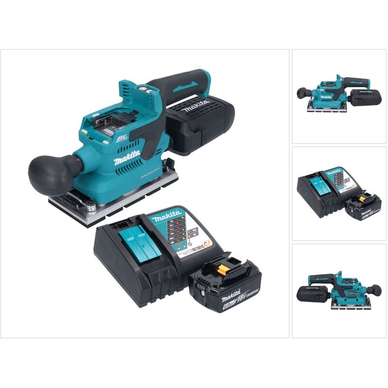 Contenuto della consegna: - 1x levigatrice vibrante a batteria Makita DBO 381 18 V - 1x modulo AWS WUT01 ( 198900-7 ) - 1x scatola per la polvere cpl. ( 135327-0 ) - 1x coperchio di protezione per la batteria ( 422807-8 ) - 1x piastra forata ( 451271-6 ) - 1x batteria Makita BL 1860 B 18 V 6,0 Ah - 1x Caricabatterie rapido Makita DC 18 RC 7,2 V - 18 V Descrizione del prodotto: La levigatrice orbitale Makita DBO381 è uno strumento potente e versatile per la levigatura di diverse superfici. Grazie all'innovativa funzione Auto-Start Wireless System (AWS), può essere collegata in modalità wireless ad aspirapolvere compatibili per garantire un'efficiente aspirazione della polvere e migliorare la pulizia del luogo di lavoro. Un altro punto di forza di questa levigatrice orbitale è l'impugnatura anteriore rimovibile, che può essere fissata senza attrezzi. In questo modo la levigatura di angoli e spigoli è particolarmente facile e comoda. L'ampia leva di serraggio gommata consente inoltre di