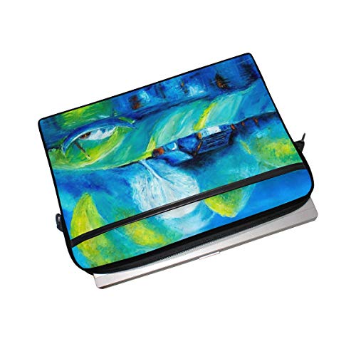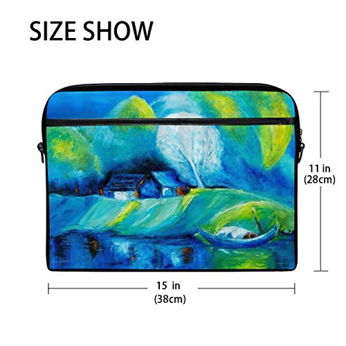 VICAFUCI Nuova borsa per laptop 15-15.4 pollici Borsa del portatile,Foresta variopinta della casa legno della riva attracco della zattera della barca della pittura a olio dell'estratto rurale dell