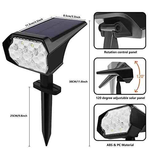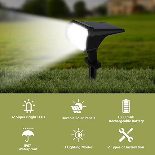 Vicalo 2 Pezzi Luci Solari Esterno, Faretti Solari a Led da Esterno IP67 Impermeabile, 32 LDE Lampade Solari da Giardino 3 Modes, Luci Solari Esterno per Giardino, Cortile, Piscina, Bianco Freddo