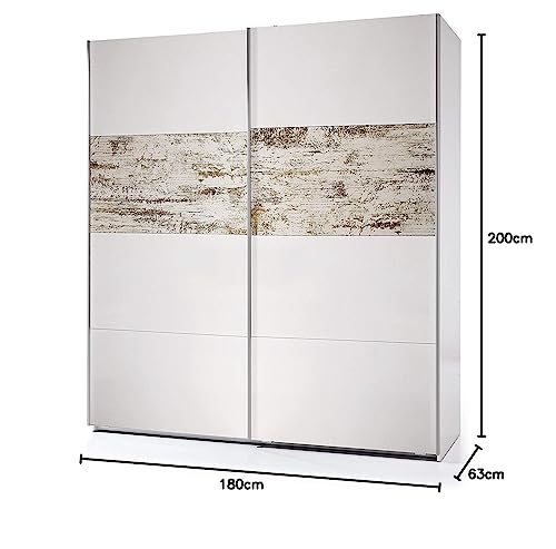 Vicar Armadio Armadietto Guardaroba Resistente Robusto Multiuso con 2 Ante Scorrevoli 2 Ripiani E 2 Appendiabiti Camera da Letto Arredo Arredamento 200 x 180 x 63 Cm Colore Bianco Lucido e Rovere