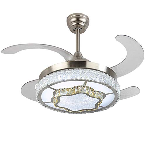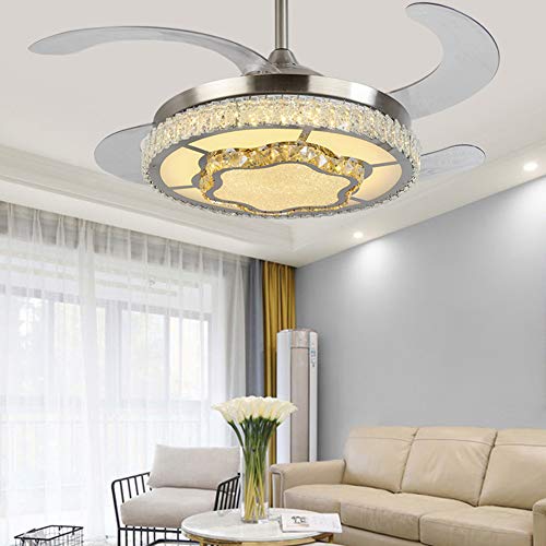 Vicareer Ventilatore Da Soffitto Luce In Cristallo Da 42 Pollici Con Pale Retrattili Telecomandate,Kit Lampadari Moderni Invisibili Dimmerabili LED,fan Per Soggiorno Cucina Camera Da Letto