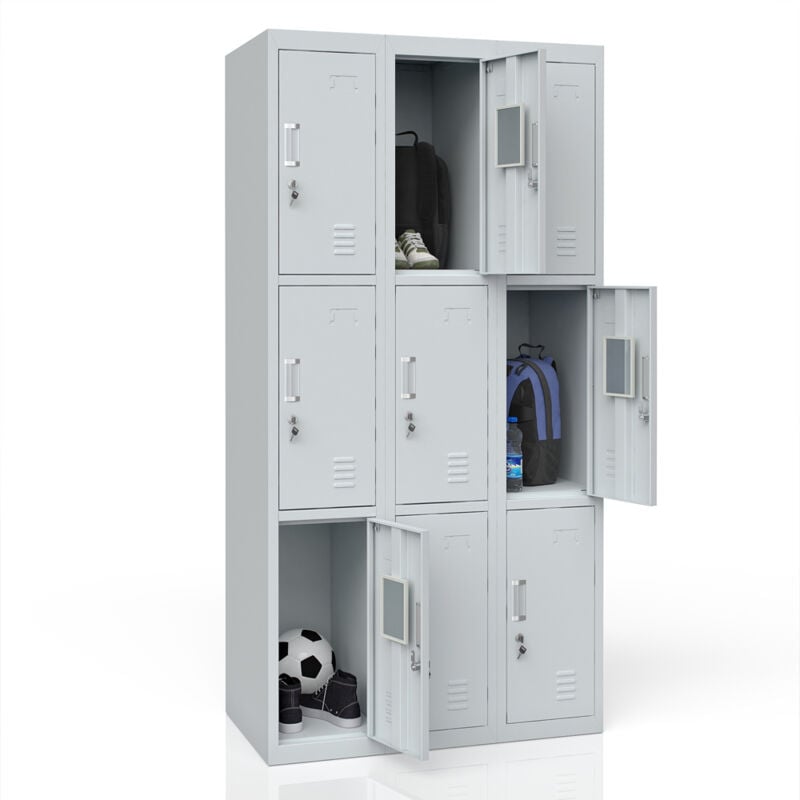 Il nostro armadietto universale è la soluzione perfetta ovunque si utilizzi: con il suo design ottimale e l'aspetto gradevole, sarà una gioia per l'uso e garantirà benessere a tutti. L'armadietto in metallo è dotato di chiusure a chiave ed è ideale per gli spogliatoi. La porta interna è dotata di specchi. DIMENSIONI: L'armadio a scomparti ha le seguenti misure: 90 cm - Larghezza, 180 cm - Altezza, 50 cm - Profondità. Tutte le dimensioni dettagliate sono indicate nelle foto. MATERIALE: L'armadio di metallo è composto da acciaio robusto per una stabilità accentuata. FORNITURA: Armadio in metallo, Istruzioni di montaggio, Materiale di montaggio L'Armadietto spogliatoio, modello universale, con 9 scomparti è la scelta ideale per gli spogliatoi delle palestre o degli uffici. Questo armadietto in metallo è resistente e robusto, perfetto per conservare al sicuro i tuoi oggetti personali. Con le chiusure a chiave, puoi dormire sonni tranquilli sapendo che le tue cose sono al sicuro. Il design