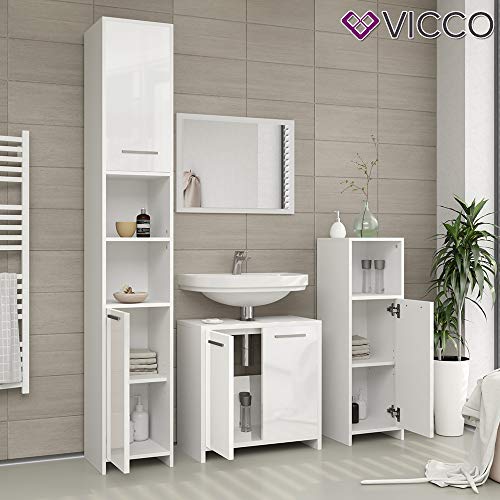 Vicco Armadio da bagno Kiko, scaffale di colore bianco lucido, mobile da bagno