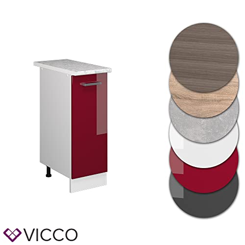 Vicco Armadio cucina dispensa alto R-line, Rosso bordeaux lucido/Bianco, 30 cm, PL Marmo