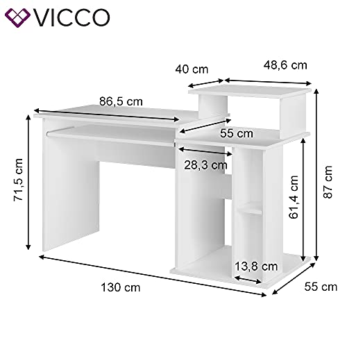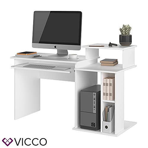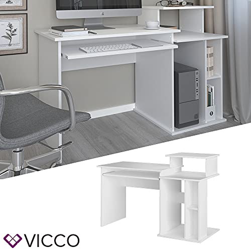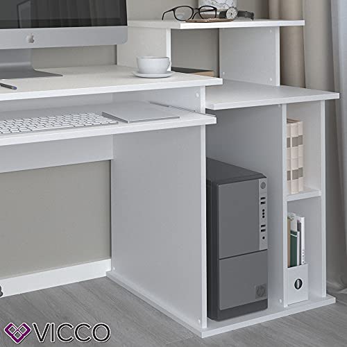 Vicco Computer Desk Tavolo da lavoro Jan White Tastiera Scaffale Scomparti