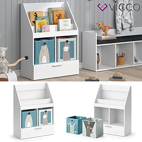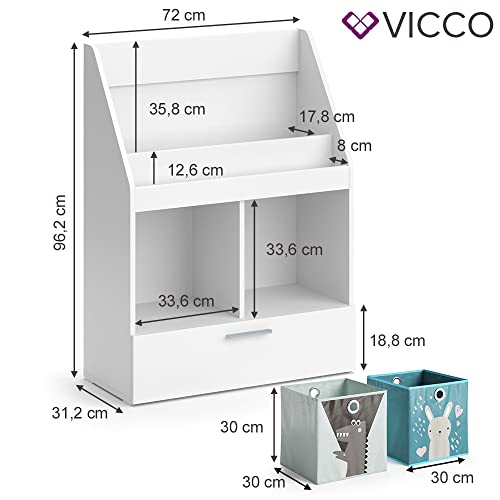 Vicco Libreria bambini Luigi, Bianco, 72 x 96.2 cm con cassetto e 2 scatole pieghevoli opt.1