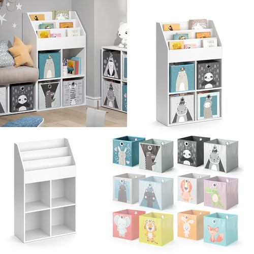 FORNITURA: Scaffale per bambini, 4x scatola pieghevole, Istruzioni di montaggio, Materiale di montaggio