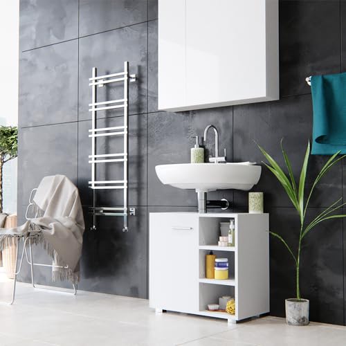 Questo mobiletto da bagno offre una grande quantità di spazio aggiuntivo, soprattutto in piccoli bagni.