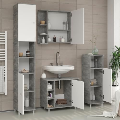 Vicco set mobili bagno Fynn, Calcestruzzo/Bianco, 3 parti, con colonna