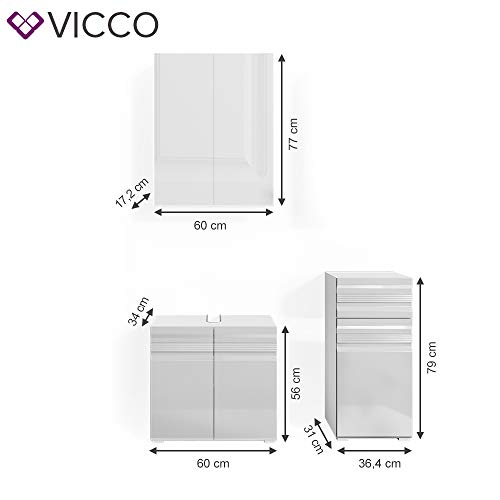Vicco set mobili bagno Freddy, Bianco lucido, 3 parti