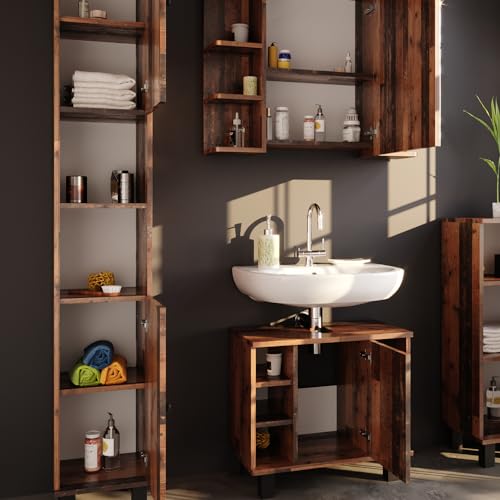 Vicco set mobili bagno Fynn, Legno antico, 3 parti, con colonna