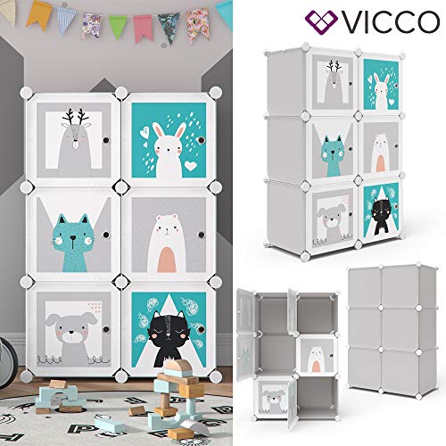 Vicco scaffale portagiochi bambini Andy, Grigio, 74 x 110 cm 6 scomparti (gatto)