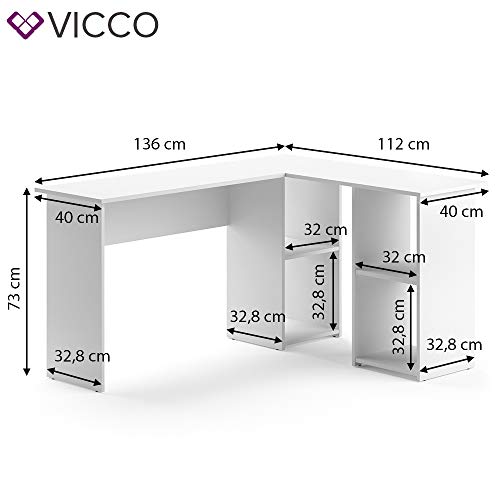 Vicco Scrivania angolare "Carlo", Bianco, 136 x 112 cm