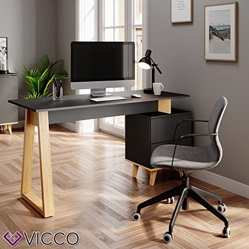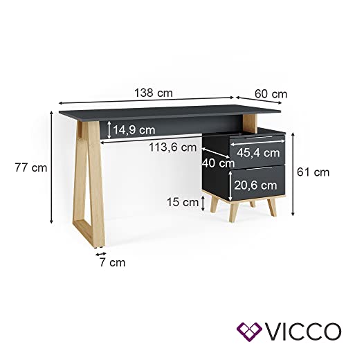 Vicco Scrivania Neptune, Antracite/Faggio, 138 x 60 cm con cassetti, L
