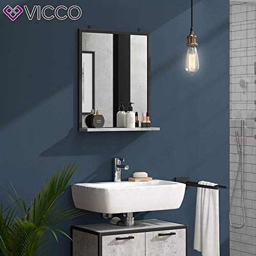 Vicco specchio bagno Fyrk, Calcestruzzo/Nero, 50 x 60 cm