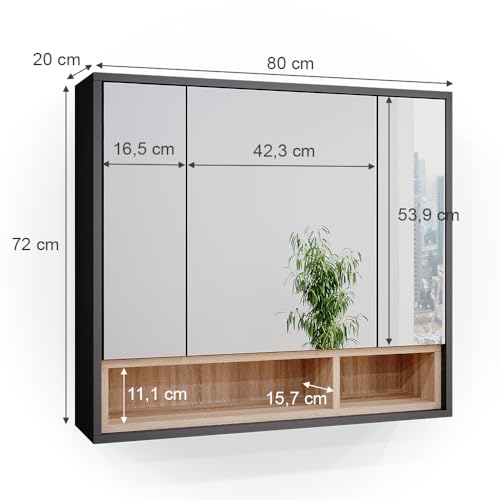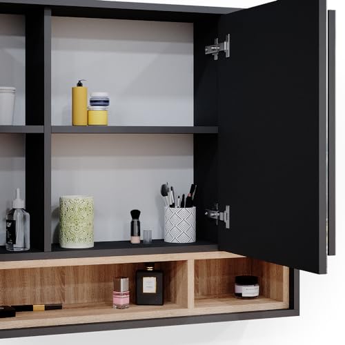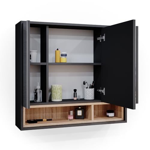 Vicco Specchio contenitore bagno Beatrice, Antracite/Sonoma, 80 x 72 cm
