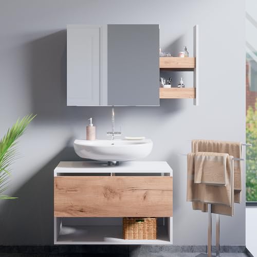 Vicco Specchio contenitore bagno Kate, Bianco/Rovere, 67 x 60 cm