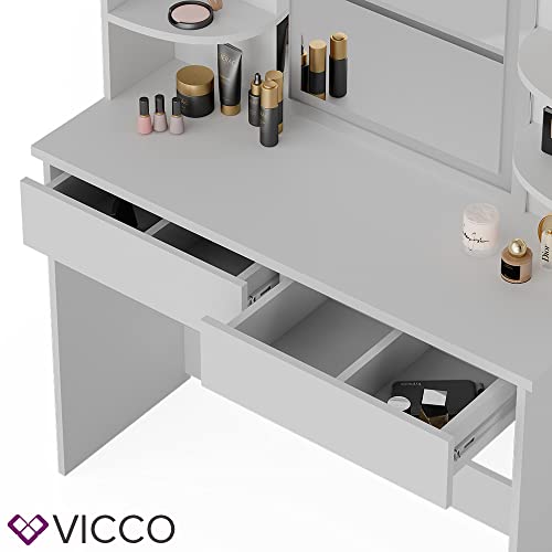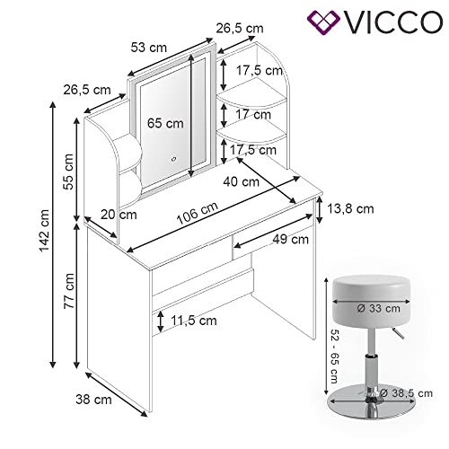 Vicco tavolo da toeletta Charlotte, Bianco, 106 cm con specchio e sgabello a LED