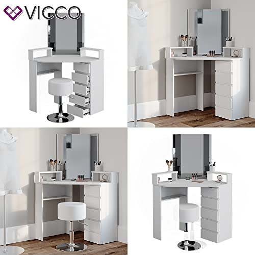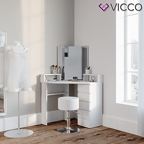 Vicco tavolo da trucco ad angolo Tilda, Bianco, 113.3 cm con sgabello