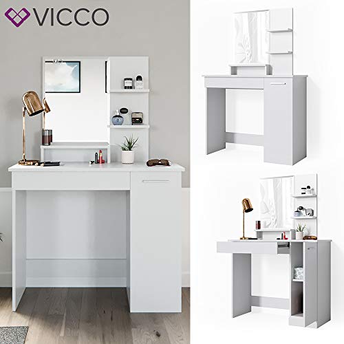 Vicco Toletta da trucco Julia Toletta Comodino Toletta make-up Specchio Bianco/ Antracite / bianco sonoma / goldcraft