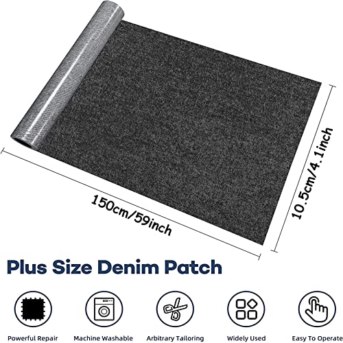 VICDUEKG Toppa termoadesiva per jeans, per interni ed esterni, toppa di riparazione, toppa extra large in denim per riparare e decorare fori nei vestiti di jeans (10,5 cm x 150 cm, nero)