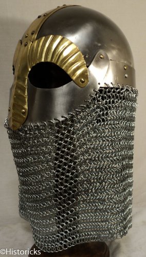 Elmo da vichingo con maschera in cotta di maglia, interamente foderata, per rievocazioni storiche, giochi di ruolo dal vivo e rappresentazioni teatrali