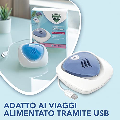 Vicks Portable Waterless Diffuser - USB Plug-In - Easy Breathing - Nightlight Feature - Essential Oil Pads Included - For Children's Bedrooms and Babies Nurseries - VH1800JUVEU