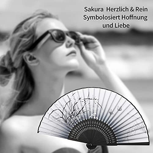 VICKSONGS Ventaglio Cinese Pieghevole, Ventaglio Elegante Donna - Ventaglio Giapponese per Regali Decorativi, Ventaglio Donna Legno Fiori Classico (Orchidea Bianca)