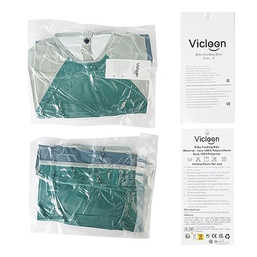 Vicloon Bavaglino a Manica Lunga, Bavaglini Pappa Svezzamento, Bavaglino Impermeabile con Tasca Frontale, Bavaglino in Tessuto PU Impermeabile, Drool Bavaglini per Bambini da 6 a 12 Mesi, Natale Verde