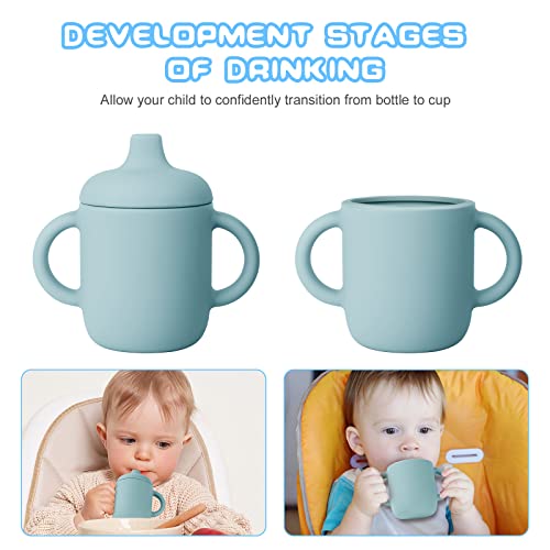 TAZZA DI APPRENDIMENTO PER BAMBINI: Il cappuccio in silicone è filettato per tenere la tazza più saldamente e prevenire perdite. Con 2 manici antiscivolo, i bambini possono tenere facilmente la tazza senza cadere facilmente. La tazza in silicone ha prestazioni stabili, è resistente alla caduta e all'usura e la tazza a prova di perdite in silicone non è facile da rompere.