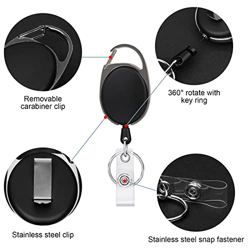 Vicloon Bobina per badge retrattile, 2 clip per mulinello retrattile, resistente, retrattile, portachiavi con porta badge a clip resistente, con bobina per portachiavi, porta badge