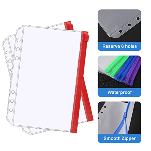 Vicloon Borsa per Raccoglitore, 10Pcs A5 Formato 6 Fori Tasca Raccoglitore, Tasche Cerniere Plastica con 2Pcs Etichette Adesive, Sacchetto per Cartelle in Plastica per Fattura, Quaderni e Carte