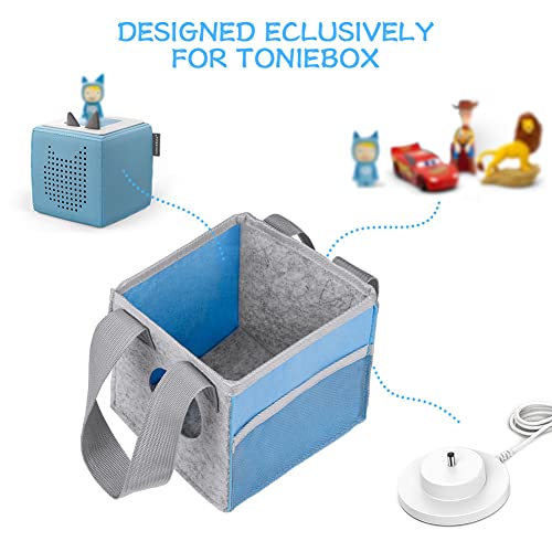 Vicloon Borsa per Toniebox Starter Set e Accessori, Borsa Portaoggetti per Toniebox Starter Set con Fori per Altoparlanti e Tasche in Rete, Borsa Organizer in Feltro, Senza Toniebox, Blu