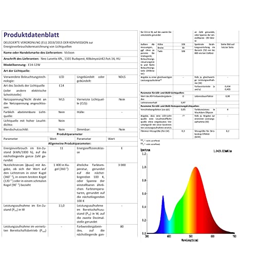 Risparmio energetico: Consumo energetico: 12 W, risparmio energetico del 90%, CRI (indice di resa cromatica)> 85, durata di servizio di oltre 35.000 ore, bassi costi di manutenzione. 1400 lumen, equivalenti a una lampadina alogena da 100W.