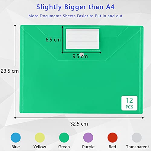 Vicloon Cartelle portafogli in plastica da 12 pezzi Cartelle portadocumenti in plastica Cartelle A4 Portafogli con bottone a pressione