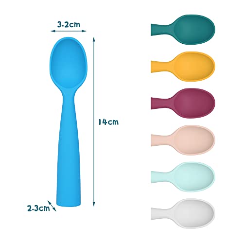 Vicloon Cucchiaino Svezzamento, 7 Pezzi Cucchiaio in Silicone Morbido Senza BPA, Cucchiaio da Addestramento per L'alimentazione del Bambino, Lavabili in Lavastoviglie, 7 Colori, Forma Cilindrica
